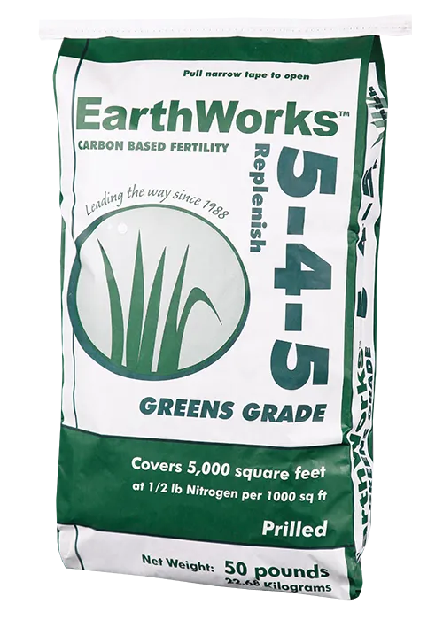 Replenish 5-4-5 is the most complete plant and soil food on the market today and is the “flagship” of the EarthWorks product line. 5-4-5 is an all-purpose formulated natural organic fertilizer that can be used for any turf or ornamental application without fear of burn or salt build-up.