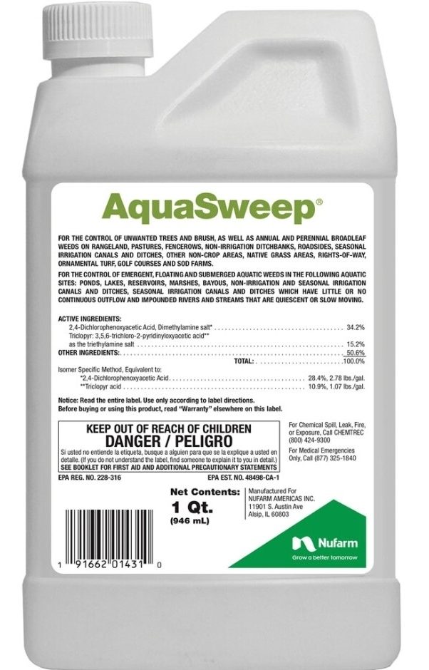 The first liquid premix with full terrestrial and aquatic uses. Aquasweep offers outstanding broad-spectrum control of broadleaf weeds, invasive and noxious weeds, trees and brush. Provides control of emergent, floating and submerged aquatic weeds. It provides selectivity for grasses, allowing excellent recolonization. Some of the turfgrass broadleaf weeds Aquasweep is labeled are black medic, ground…