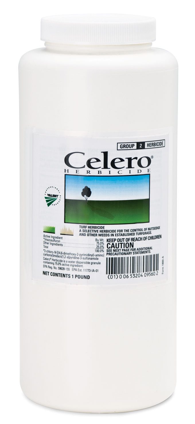 Celero herbicide is a selective, post-emergence herbicide for control of sedges, including kyllinga, in established residential and commercial turfgrass, golf courses and sod farms. Imazosulfuron, the active ingredient in Celero, is a systemic sulfonylurea (SU) herbicide that translocates down to the roots to deliver superior sedge control.
