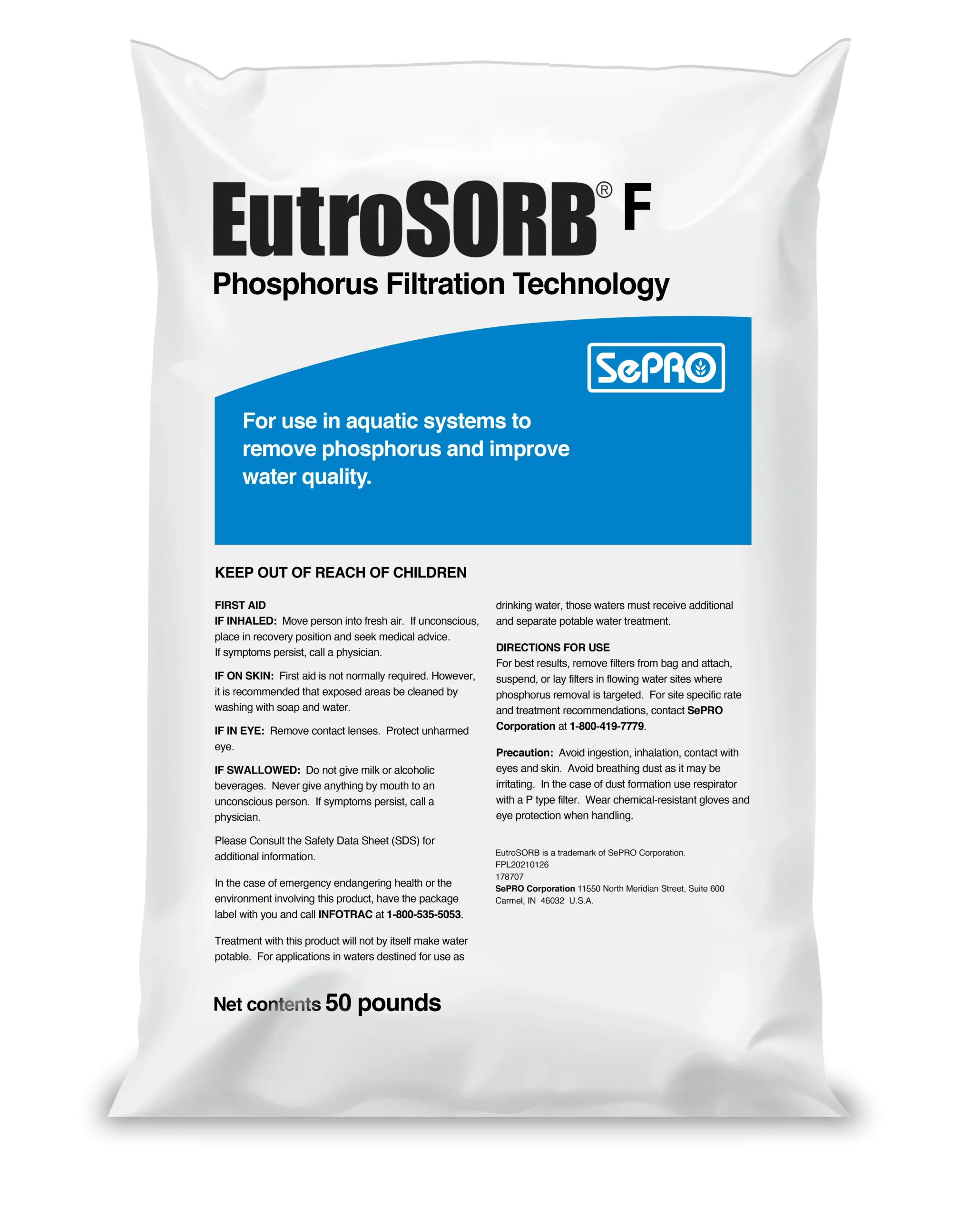 EutroSORB filters focus on stopping phosphorus concentrations from external flowing water. The filters cut off phosphorus at the source and reduce buildup in lakes. This means less algae growth and healthier water bodies. No equipment necessary for use, simply place it in water. EutroSORB has high phosphorus binding capacity – approximately 100 lbs. will remove 1 lb. of phosphorus. Simply replace EutroSORB filters after recommended intervals. Exhausted filters can be reused as soil amendment or disposed to a landfill.