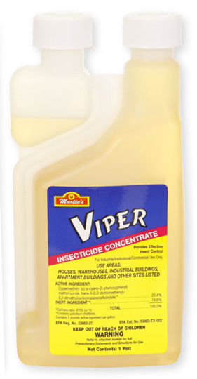 Control Solutions Viper Insecticide provides fast knockdown and residual control of roaches, bees, ants, spiders, scorpions, flies, fleas and ticks, chiggers and other listed pests. Viper can be used as a spray treatment inside and outside, or as a barrier spray around the perimeter of structures. It can also be used on wood and lumber as protection against termites, wood-infesting beetles, and carpenter ants. Viper is an excellent all-around spray that provided quick knockdown and control of nuisance pests and is perfect for initial use of maintenance applications.